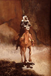 2009Camel Man, acryl met bloemzijde vloeipapier en zand op doek. 70 x 90